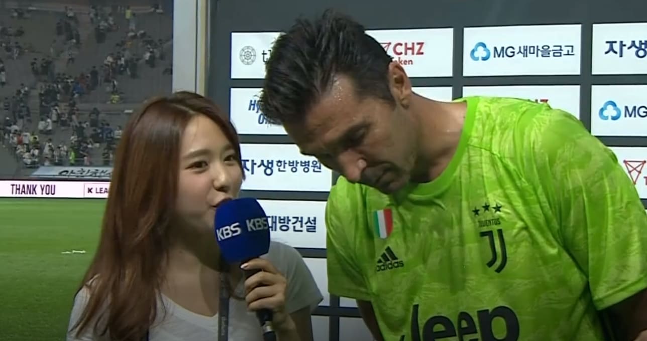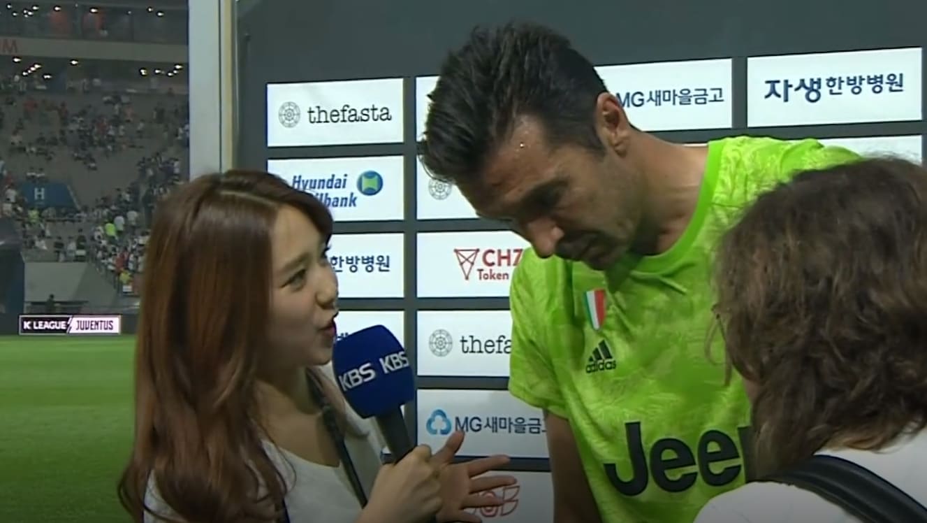 끝으로 이혜성 아나운서는 “한 시간 넘게 당신을 보려고 기다린 한국 팬들에게 한마디 해달라”라고 부탁했다. 하지만 부폰은 질문을 잘못 알아듣고 “그게 경기를 하는 유일한 이유다”라고 답했다.