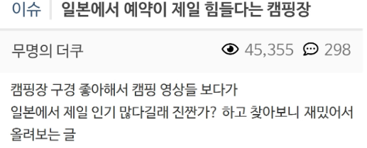 일본에서 예약이 제일 힘들다는 캠핑장