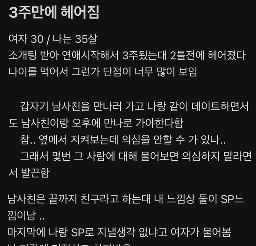 여친이 헤어지고 SP하자고 함