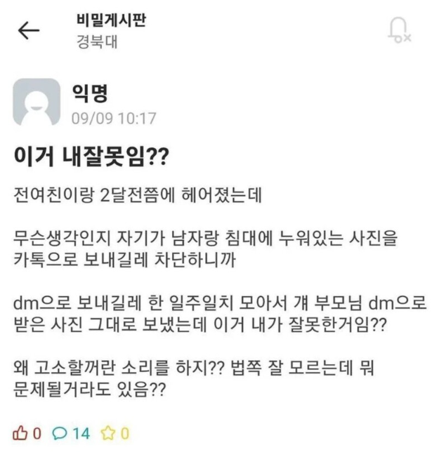 전여친이 딴 남자랑 뒹구는걸 보내길래 그대로 걔네 부모한테 보냄