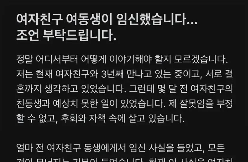 여자친구 여동생이 임신했습니다… 조언 부탁드립니다.
