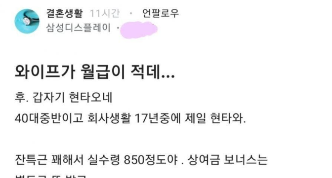 실수령 850도 적다는 아내