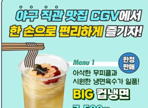 신규 출시된 CGV 영화관 냉면 가격 근황