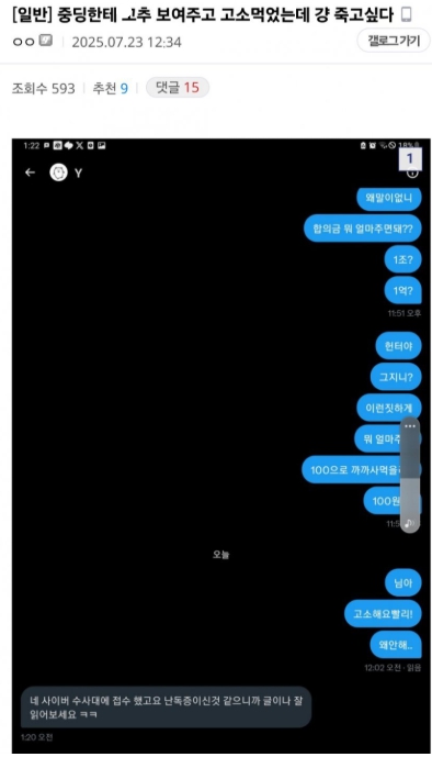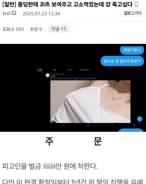 여학생한테 ㄲㅊ사진 보낸 커뮤인의 최후