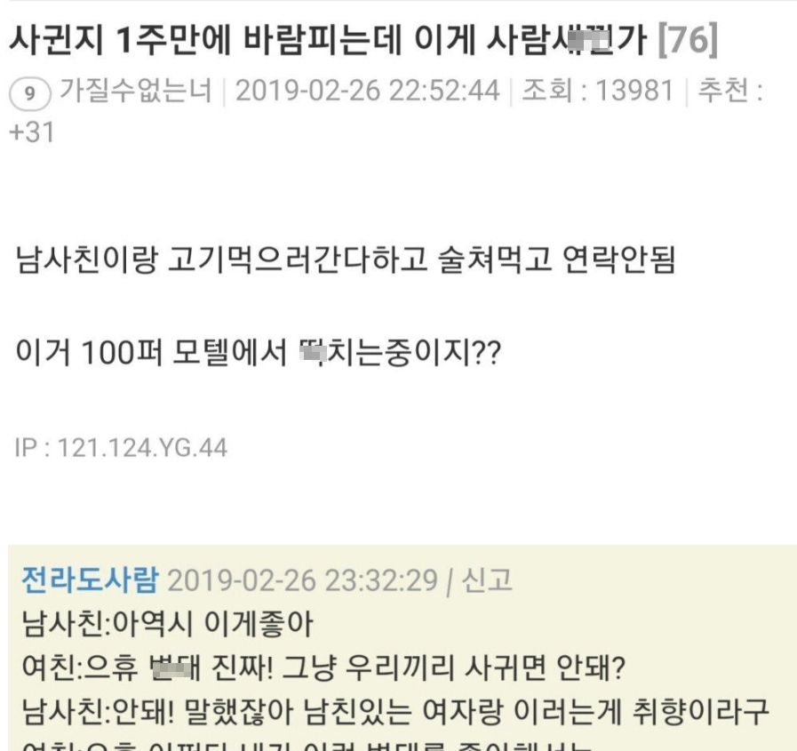 사귄지 1주만에 바람피는데 이게 사람새낀가