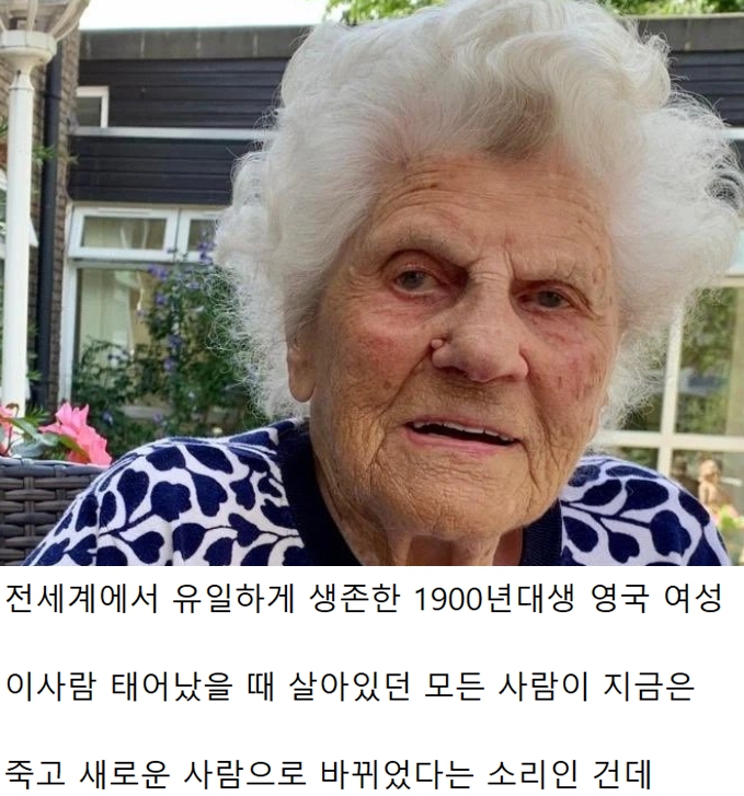 현재 전세계에서 유일하게 생존하고 계신 1900년대생은 영국의 에델 카터럼(Ethel Caterham)이다.