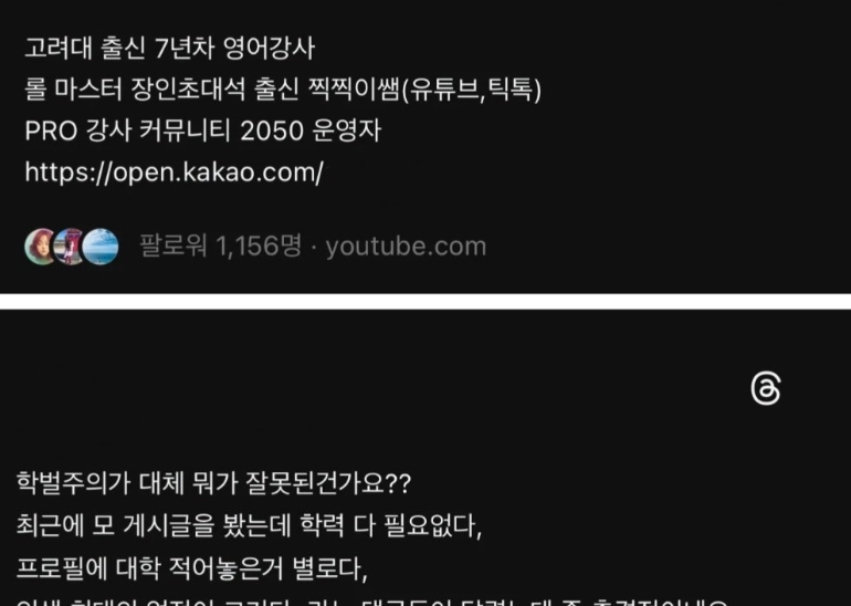 스레드에서 핫한 고대 출신 학원강사의 학벌주의