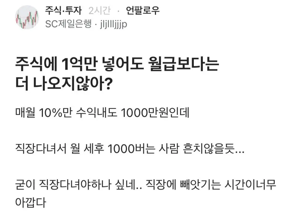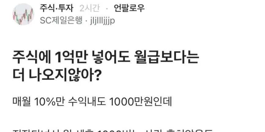 주식에 1억만 넣어놔도 월급보단 많이 나오지 않아?