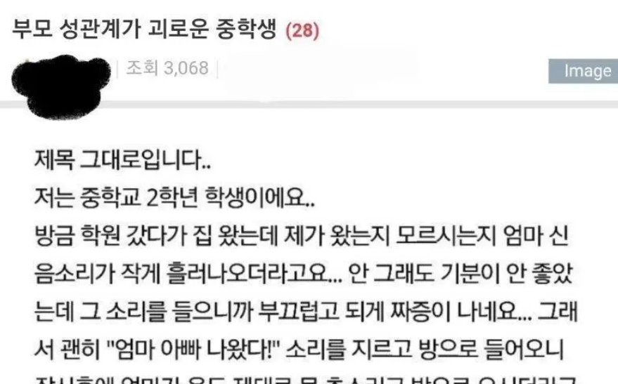 부모의 ㅅㅅ 소리가 괴로운 중학생