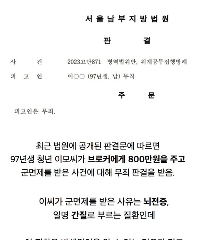 800만원 주고 군면제 받았다 걸렸는데 무죄받음
