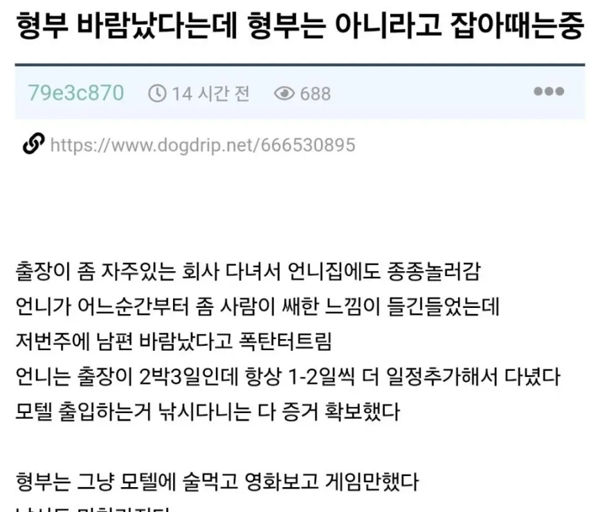 외도라고 주장하는 언니 와 절대 아니라는 형부