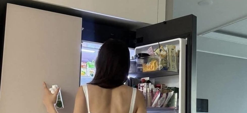 냉장고에서 김치 꺼내주는 눈나의 복장