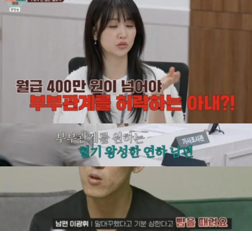 월급 400넘어야 ㅅㅅ해주는 와이프를 둔 매맞는 남편