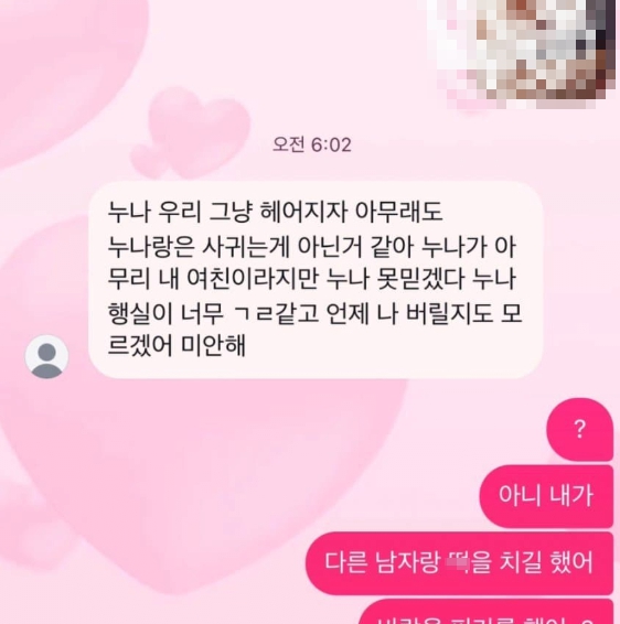 ㄱ슴 사진 보냈더니 연하 남친한테 걸레라고 차인 누나