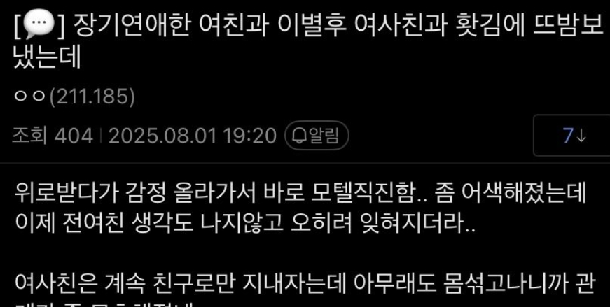 홧김에 11년지기 여사친이랑 모텔가서 ㅅㅅ하고 현타 온 이유