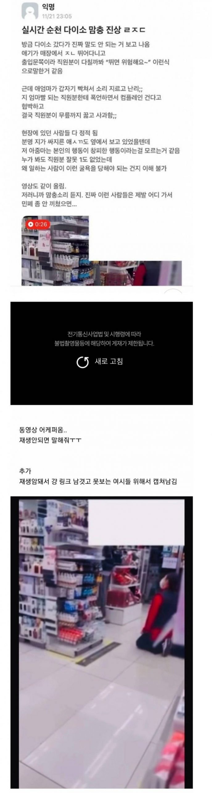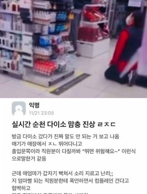 실시간 난리난 순천 다이소 맘충 무릎 갑질