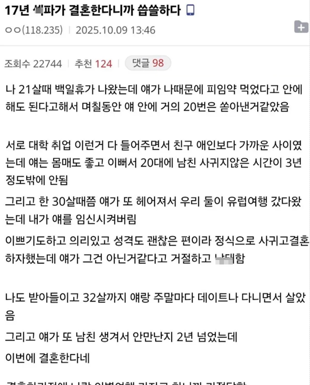 17년 ㅅ파가 결혼한다니까 씁쓸해진 이유