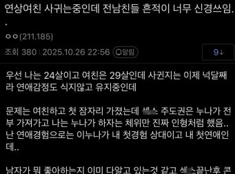 •  여친과 ㅅㅅ했는데 전남친 흔적때문에 괴롭다는 남친