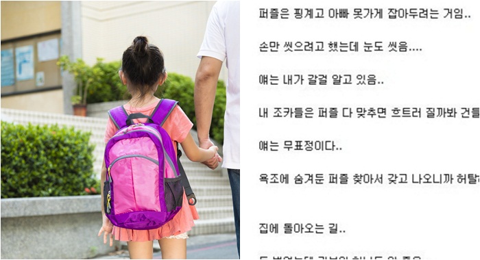 그러자 아이는 방으로 달려가 퍼즐을 갖고 나왔고 그것을 맞추기 시작했다고 한다.