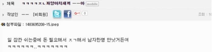 ‘돈이 필요해서 조건을 했다’는 글쓴이는 ‘조건만남’을 통해 만난 한 남성과의 사연을 ‘인증샷’과 함께 전했다.