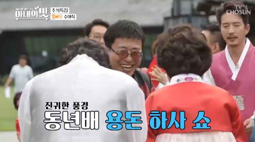 등장 직후 자리에 앉는가 싶더니 갑자기 일어난 그는, 품 안에서 홍빠오를 꺼내 들었다. 그를 본 출연자들은 홍빠오를 받기 위해 재빠르게 줄을 섰다. 장영란은 절까지 하며 흥분을 감추지 못하는 모습을 보였다.