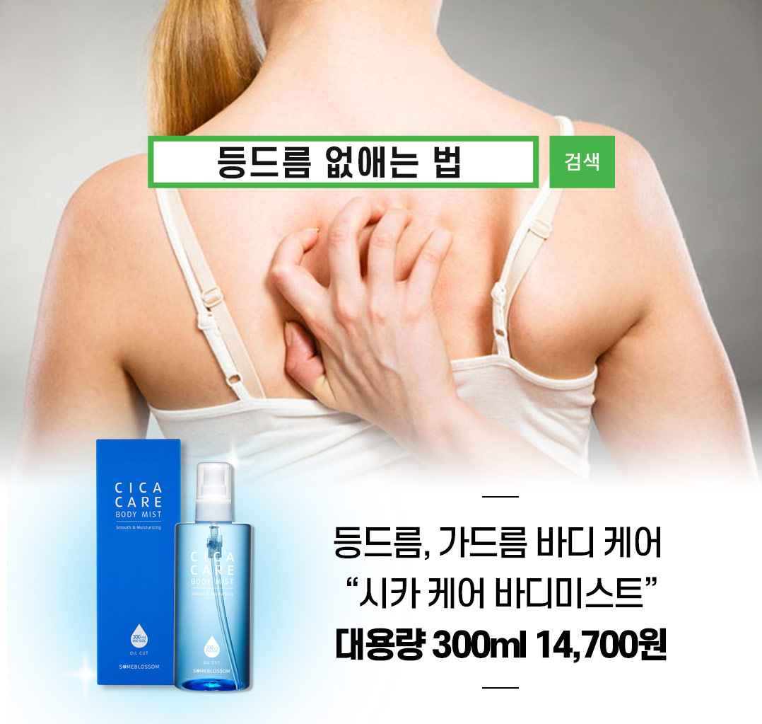 이러한 등드름을 없애기 위해서는 일주일에 한번씩 소금물로 씻어주거나 물과 식초를 2:1 비율로 섞어 등에 뿌려주는 방법이 도움이 된다. 아울러 시중에 나와있는 등드름 전용 바디미스트와 사워용 바디스크럽 제품을 이용하는 것 역시 효과적이다.