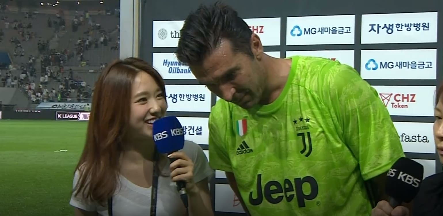 끝으로 이혜성 아나운서는 “한 시간 넘게 당신을 보려고 기다린 한국 팬들에게 한마디 해달라”라고 부탁했다. 하지만 부폰은 질문을 잘못 알아듣고 “그게 경기를 하는 유일한 이유다”라고 답했다.