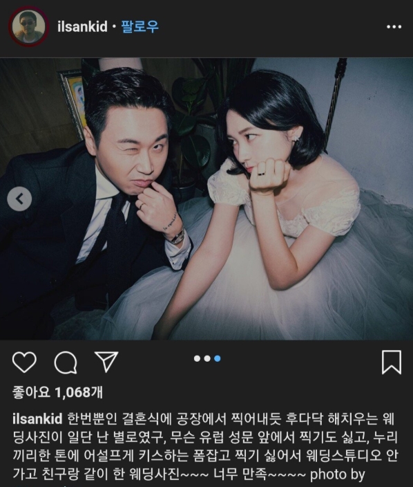 이세화의 남편 윤담백은 자신의 SNS를 통해 “한번뿐인 결혼식에 공장에서 찍어내듯 후다닥 해치우는 웨딩사진이 일단 난 별로였구, 무슨 유럽 성문 앞에서 찍기도 싫고, 누리끼리한 톤에 어설프게 키스하는 폼잡고 찍기 싫어서 웨딩스튜디오 안가고 친구랑 같이 한 웨딩사진”이라 전했다.