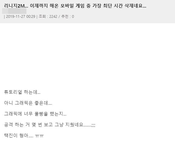 그러나 리니지2m은 오픈 이후 현재 여론이 상당히 좋지 않다.