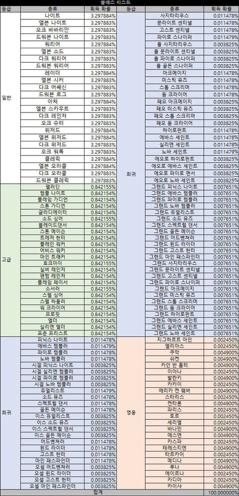 더욱이 ‘영웅’ 등급의 클래스의 뽑기 확률은 0.002%에서 0.004%인 것으로 확인됐다.