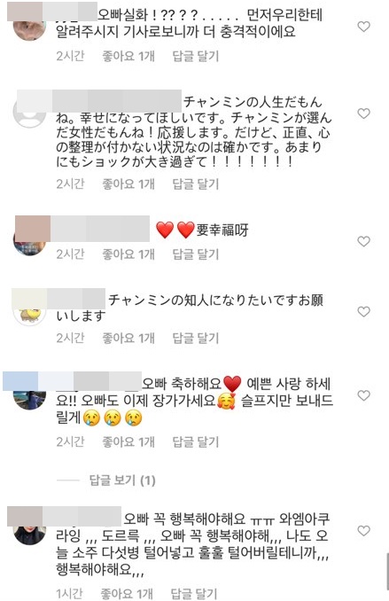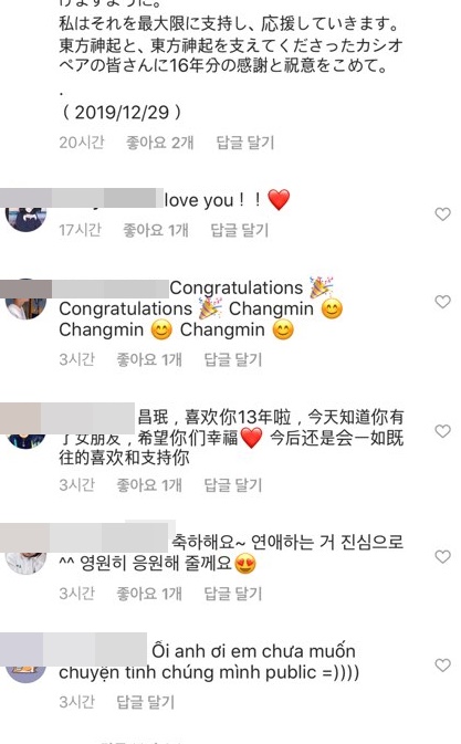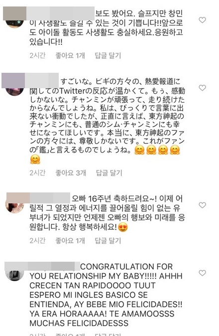 여러 팬들은 “기사를 접하고 놀랐어요. 조금 섭섭했지만 오빠가 행복했으면 좋겠어요” “너무 축하드려요” “슬프지만 사생활도 즐길 수 있어야 한다. 응원합니다”라는 댓글로 최강창민의 연애를 응원했다.