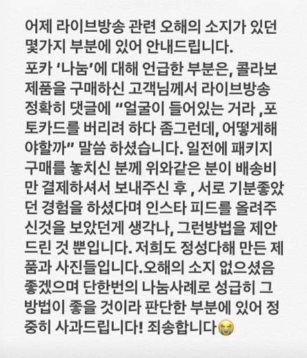 이 대표는 비난이 거세지자 사태 수습에 나섰다. 9일 자신의 인스타그램에 “경솔한 발언에 대해 사과드린다”며 “가족 관련 댓글에 감정이 격앙됐었다. 앞으로 고객들 피드백에 귀 기울이며 성숙한 기업이 되도록 노력하겠다”고 사과했다.