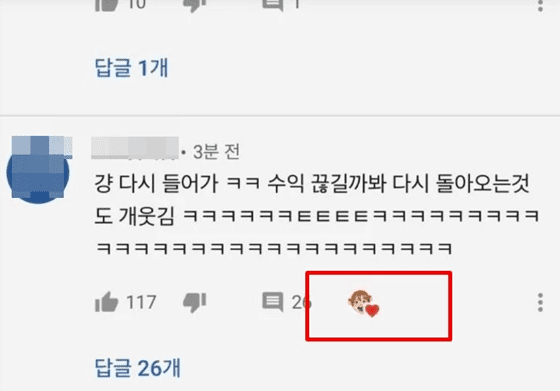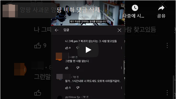 해당 글 작성자는 양팡의 복귀 영상 댓글에 달린 비난 댓글을 양팡이 삭제했다고 주장하며 캡처한 화면을 공개했다.