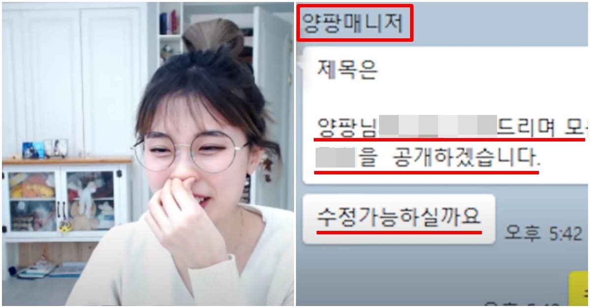 해당 카카오톡에서 양팡의 매니저는 “제목은 양팡님께 깊은 사죄드리며 모든 진실을 공개하겠습니다. 수정가능하실까요”라고 메시지를 보냈다.