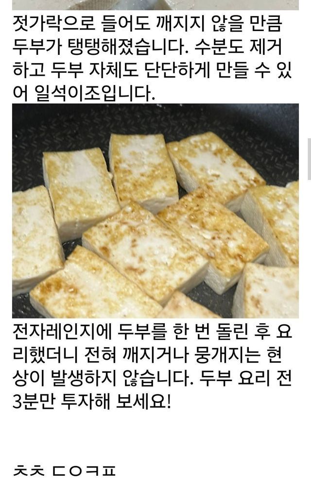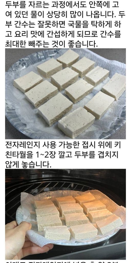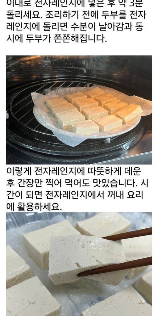 전자레인지에서 꺼낸 두부는 단단해져 조리 과정에서 부서지지 않습니다.