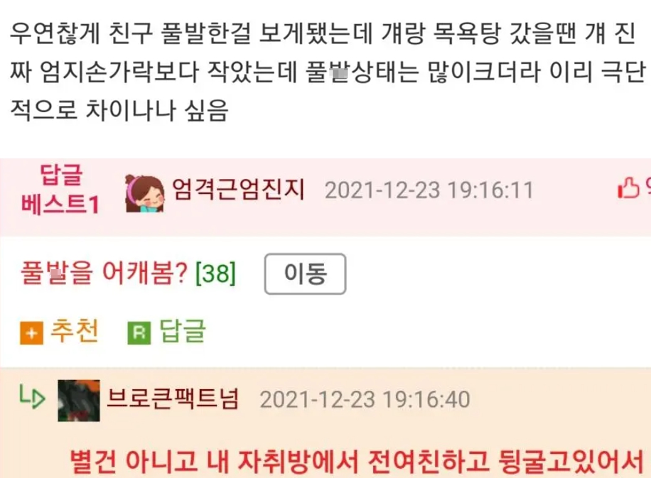 우연히 친구 풀발ㄱ 봤는데 이렇게 차이남?
