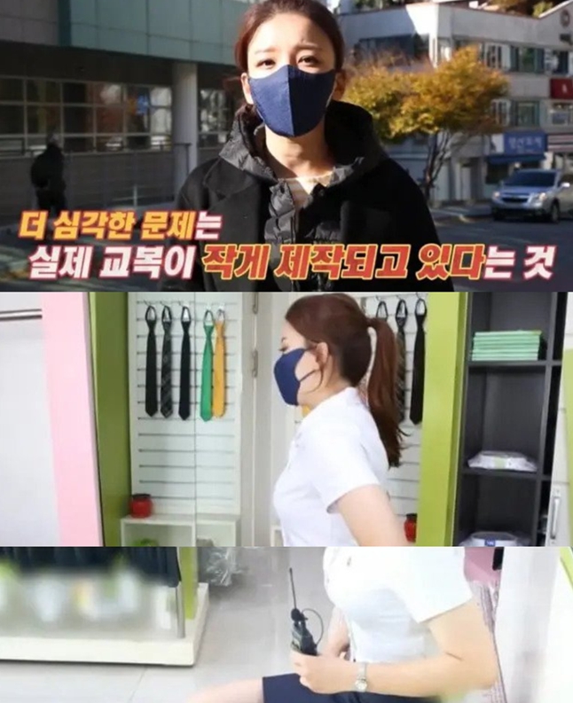 입기 불편하다는 여고생 교복을 직접 입어본 리포터 누나