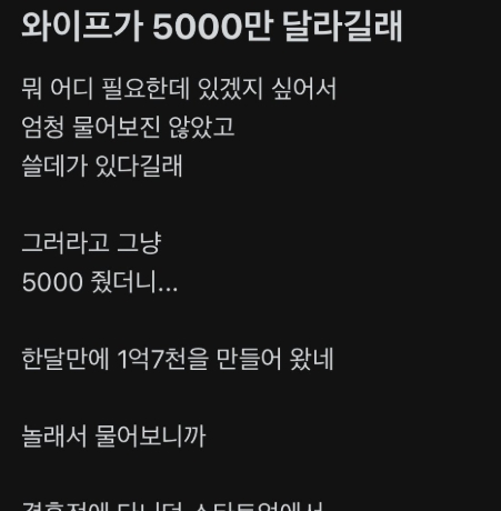 5000만원 빌려서 3배 넘게 불려온 와이프