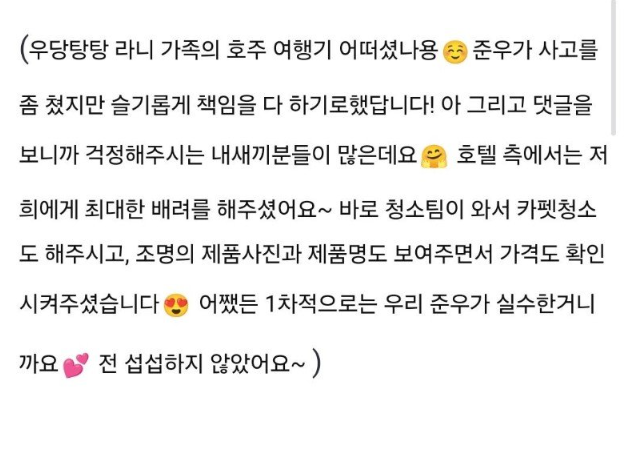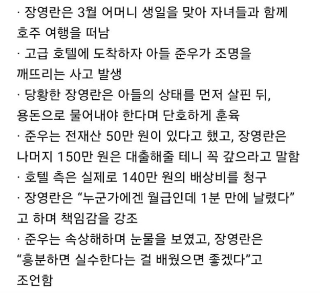 애 교육 잘시킨다고 호평중인 호주 호텔에서 100만원대 조명 깬 장영란 아들