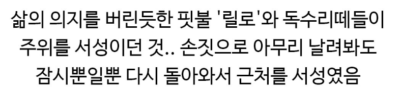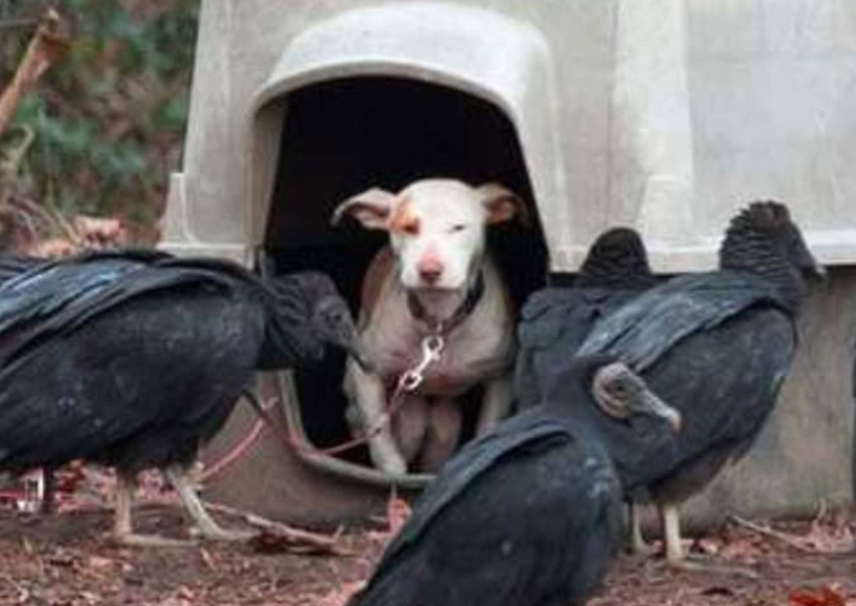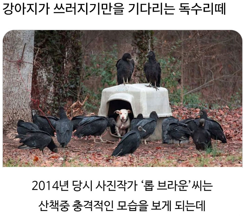 강아지가 쓰러지기만을 기다리는 독수리떼