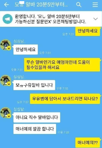 50분 5만원부터라는 모ㅇ수유 알바 카톡 레전드