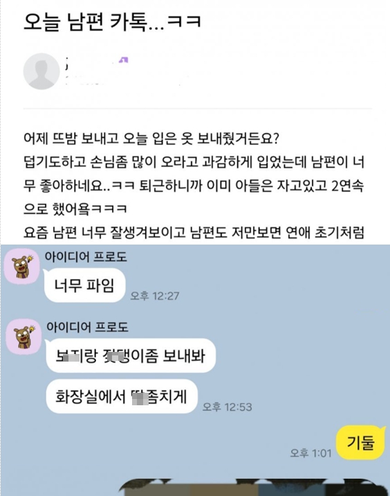 남편이랑 뜨밤 보낸 유부녀 누나의 카톡 수위