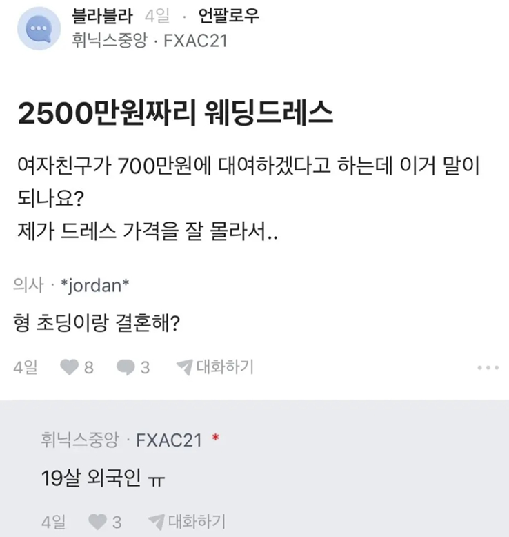 여친이 2500짜리 웨딩 드레스 700에 빌리겟대요