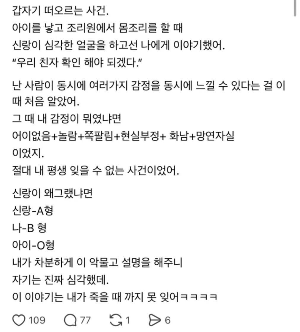 애 낳는데 조리원에서 친자 확인하자고 한 남편 사건