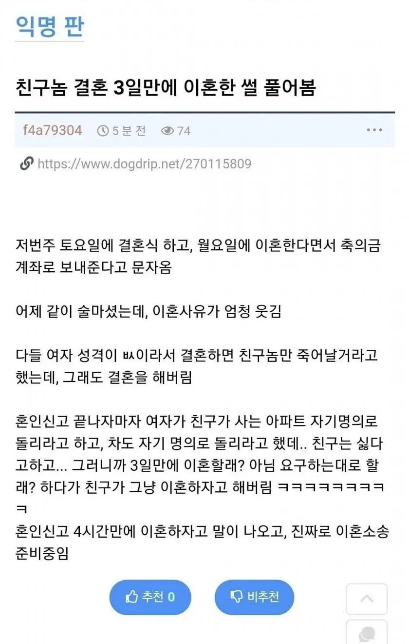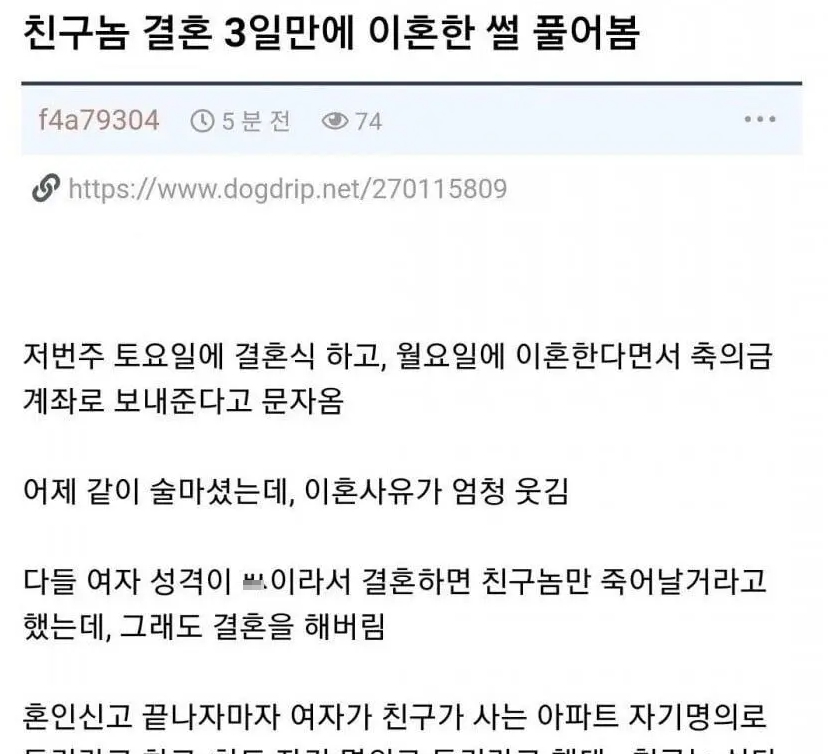 3일만에 이혼한 대참사