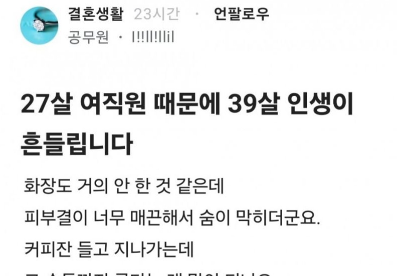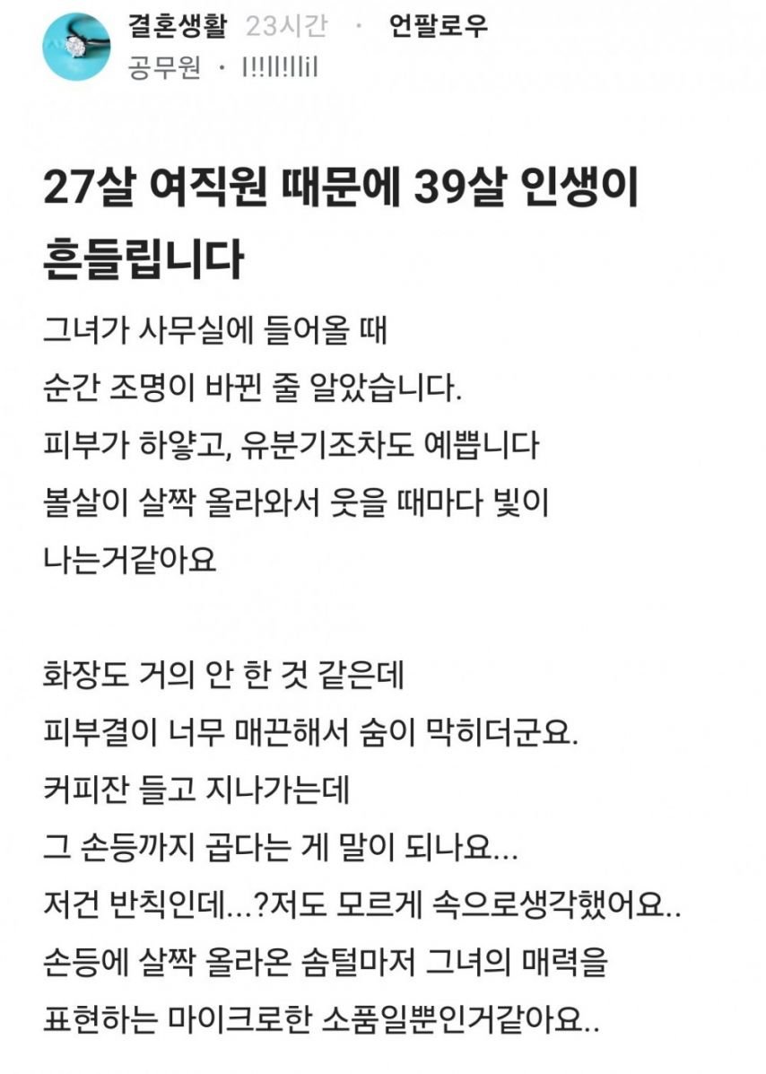 27살 여직원 때문에 39살 인생이 흔들립니다