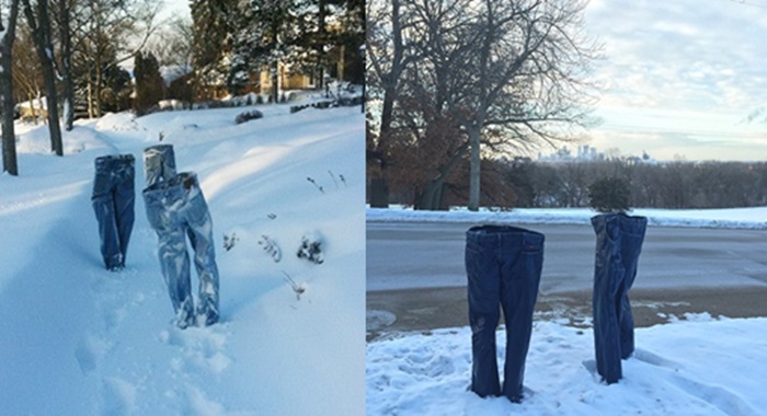 바지만 입은 투명인간? 길가에 홀로 세워진 청바지들(사진 11장)